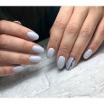 Aplique la base: la primera en una capa delgada, la segunda utilizada para nivelar la arquitectura. Bordea el borde libre. Seque cada capa durante 2 minutos con lámpara UV o 30 segundos con LED.