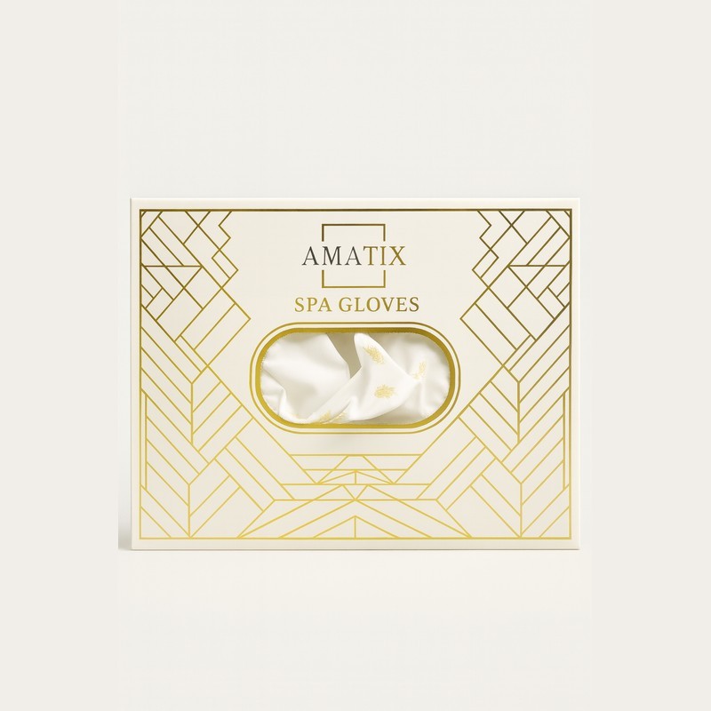AMATIX Spa Gloves son guantes de spa fabricados en material plástico ultraresistente con tejido interior absorbente que retiene la crema para una hidratación profunda y prolongada.